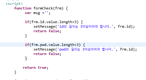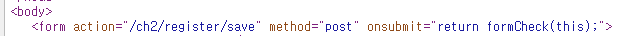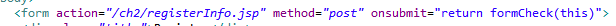 >> 여기서는 formCheck() 라는 함수를 onsubmit 이벤트를 걸어놨고 여기서 this는 form 태그 자체를 의미한다.