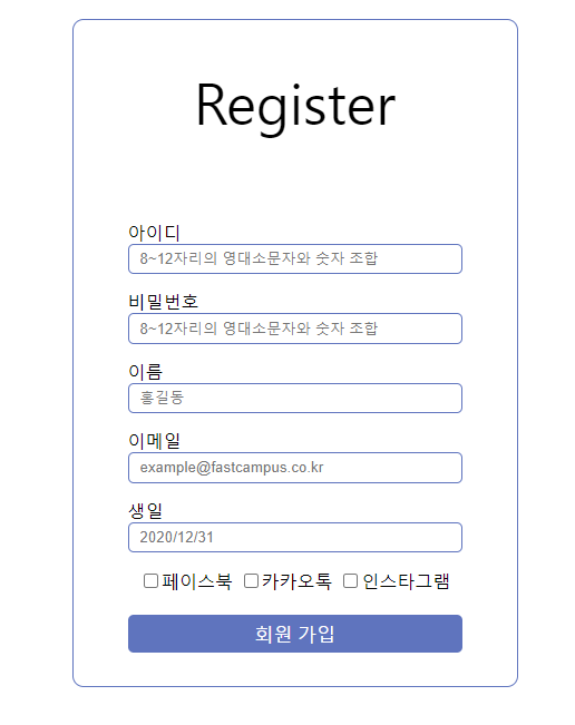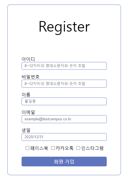 >> 회원가입시에 정보가 누락되면 안되므로 데이터가 submit 될때 누락된 정보가 있는지 확인하는