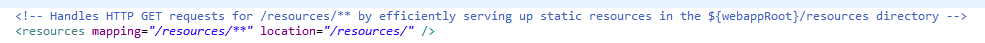 >> 이때 resources 경로를 없앨수 있는데 이는 spring > servlet-context.xml 을 통해서 변경할 수 있다.