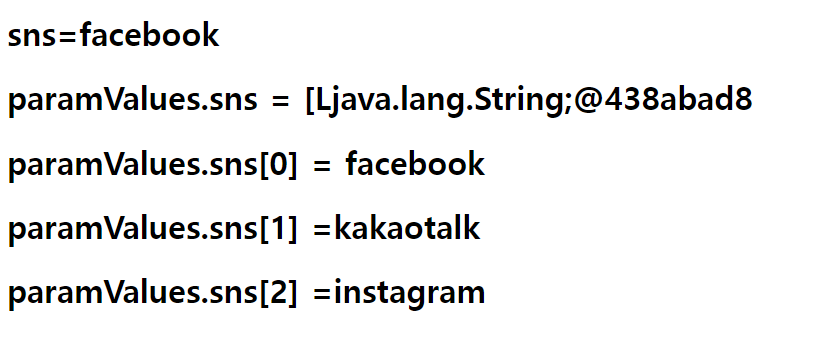 배열일 경우는 paramValues.sns[0] 등으로 배열로 접근했다.