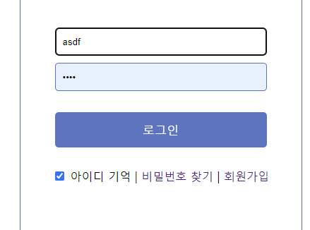 따라서 아이디 적는 칸에 asdf가 출력되었고, 아이디기억에 checked되어 있다,