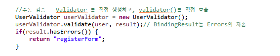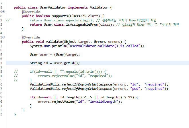 -- 이내용은 user 객체에 대한 UserValide 클래스의 검증