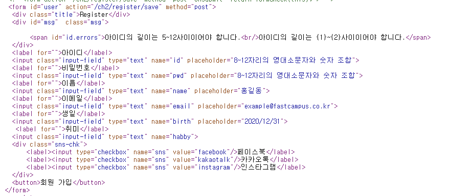 >>> <form id="user" action="/ch2/register/save" method="post">