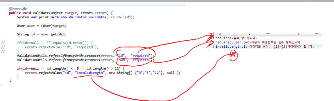 >> Valid에서 지정한 필드에대한 에러코드값에 맞는 에러 내용을 properties 파일을 만들어서 저장해주고
