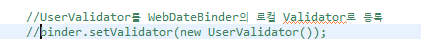 생성한 UserValidator() 클래스를 setValidator를 통해서 지정해주고