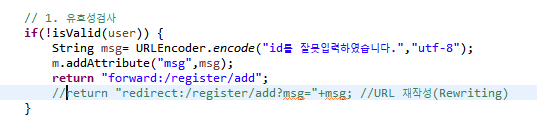 이렇게 작성한 검증클래스를 사용하기 위해서는 해당 컨트롤러로 돌아가서