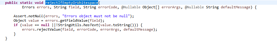 >> 추가적으로 ValidationUtils 의 rejectIfEmptyOrWhitespace 의경우는