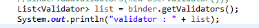 >> 등록된 Valid는 binder.getValidators()를 통해서 List<Validator> 를통해서 확인할 수 있다.