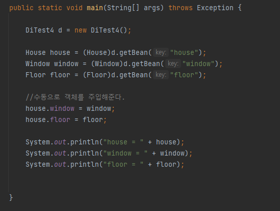 >> House Class에 매개변수로 Window, Floor 가 있다고 할때 해당 클래스에 객체를 주입해주려면