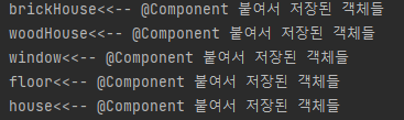 System.out.println((String)s + "<<-- @Component 붙여서 저장된 객체들");