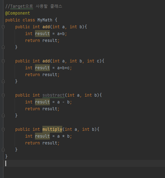 advice : target에 동적으로 추가될 부가 기능(코드) (Logging, transaction, security)