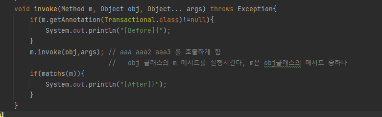 m.invoke(obj,args) >> 핵심 기능
