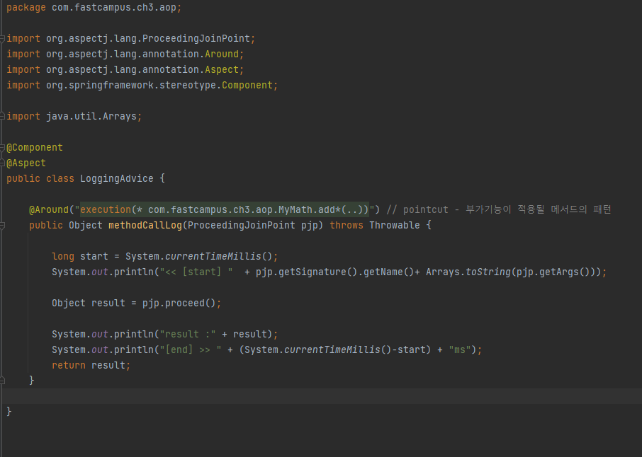 >> execution(*.com.fastcampus.ch3.aop.*.*(..)))