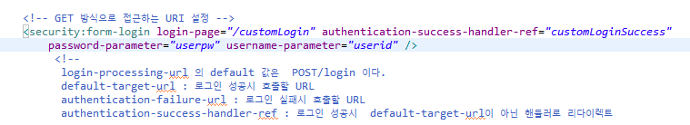 security-context.xml에서 userid, userpw로 변경해줘야 한다.