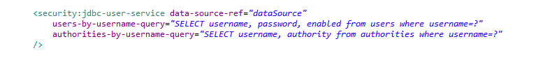 <security:jdbc-user-service> 를 이용한다 속성으로