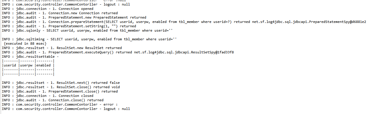 아래에 보다싶이 userid='' 값이 비어있는 것을 확인 할 수 있다.