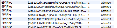 password Colume이 암호화 되어 들어간것으로 확인됩니다.
