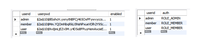 - 따라서 JDBC 기본 Table을 통해 연결할때는 users, authorities 테이블이 필수이다.