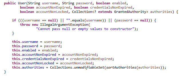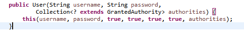 CustomUser의 생성자에서는 User의 생성자가 호출이 되는데 이때 User의 아래 생성자가 호출된다.
