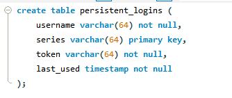 >> Spring-security 에서 'remember-me' 기능 역시 JDBC를 이용하는 경우처럼 지정된 이름의 테이블을 생성하면 지정된 SQL문이 실행되면서 이를 처리하는 방식과 직접 구현하는 방식이 있습니다.