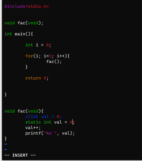 static int val = 0;일떄의 결과는 달라진다.