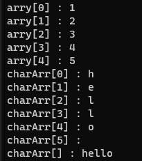 arry[0] = 1, arry[1] = 2, arry[2] = 3, arry[3] = 4,arry[4] = 5