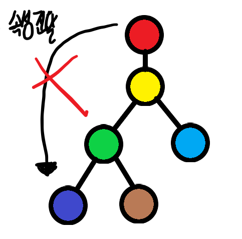 속성은 1개씩 타고 내려가며, root로 부터 color = "red" 가 들어가게 되면 한칸 단계씩 옴겨져야 한다