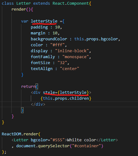 - JSX에서는 style 속성 안에 직접 CSS를 포함할 수 없으며, 그 대신 스타일 정보를 담은 객체를 참조해야 한다.