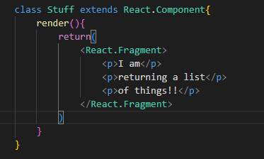 - 리턴하고 싶은 아이템들을 React.Fragment라는 컴ㅊ포넌트 안에 넣기만 하면된다