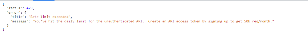 >> 다음과 같은 에러코드가 발생하였다. 해당 api의 요청 한도가 초과 했다는 의미 같다.