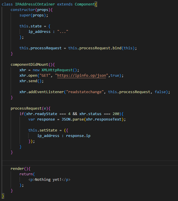 >> 그 다음에는 상태에 저장된 IP 주소를 참조하도록 render 메서드를 수정한다.