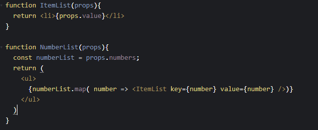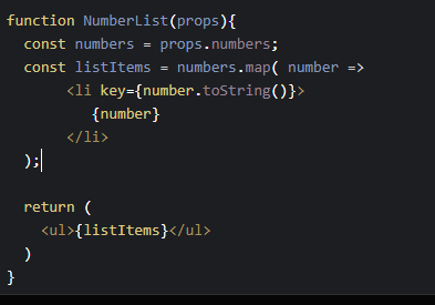 const listItems = numbers.map( (number) => <li>{number}</li>);