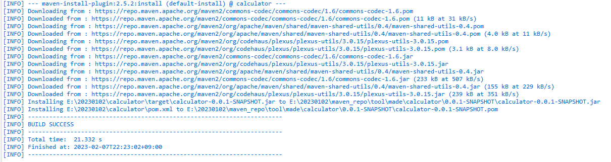 - maven install 의 경우 현재 내가 작성하고 있는 MAVEN 프로젝트를 JAR 파일로 압축하여, Local Repository에