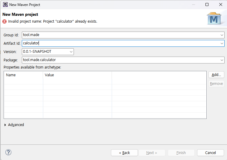 2-1-1) maven project 생성 maven-archetype-quickstart(java프로젝트), webapp(web 프로젝트)