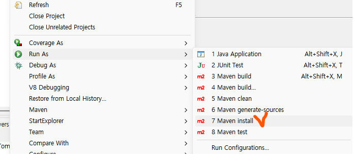 2-1-2) 프로젝트를 작성을 마친 후에 library화 할 프로젝트를 Maven install 해준다.