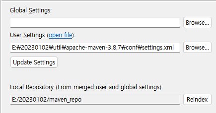 Global Settings 의 경우는 전체 Maven에 대한 설정을 나타낸다.