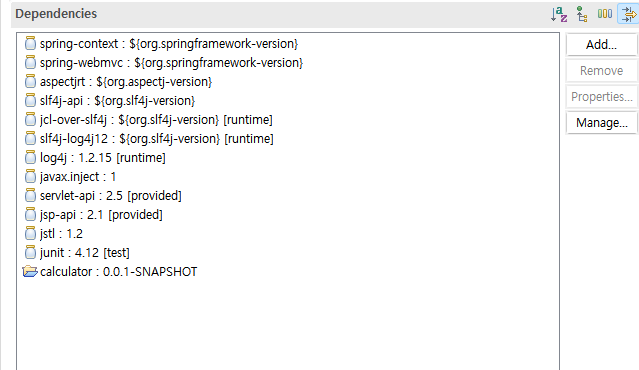 - 위에처럼 calculator가 apache 프로젝트에 dependency되어 있을경우 calculator의 .jar를 Local Repository에서