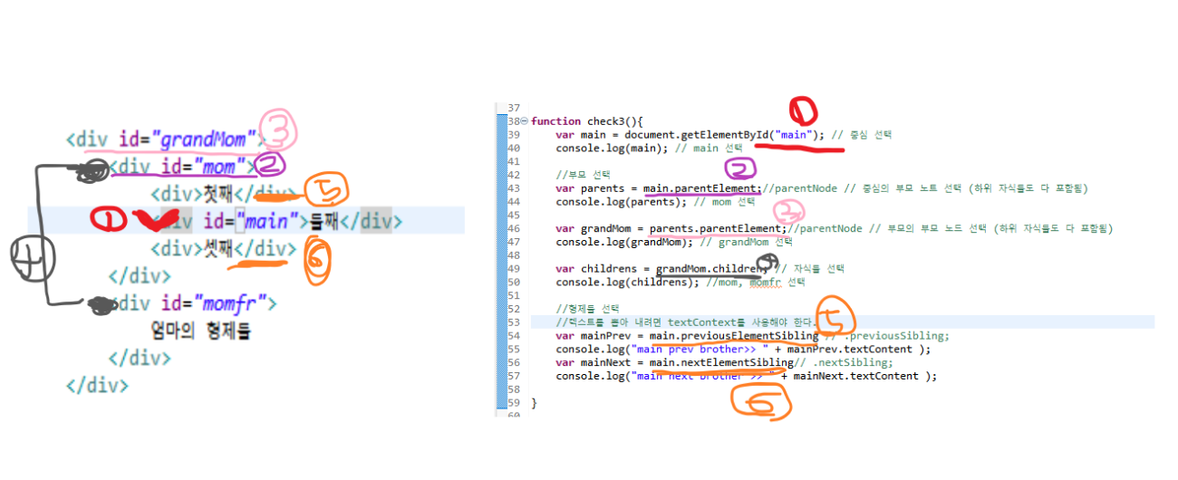 var parents = main.parentElement;//parentNode // 중심의 부모 노트 선택 (하위 자식들도 다 포함됨)