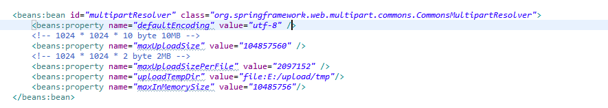 maxUploadSize는 한번의 Requset로 전달될수 있는 최대의 크기를 의미하며,