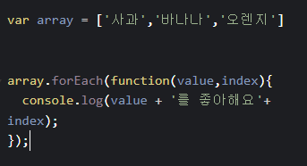 forEach : 배열의 모든 원소에 대해 특정 코드블럭을 수행할 수 있는 방법이다.