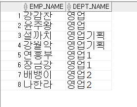 전에 나온 8개의 데이터를 그룹별로 묶어서영업 2, 영업기획 2, 영업1 2, 영업2 2 값이 return 되었다.
