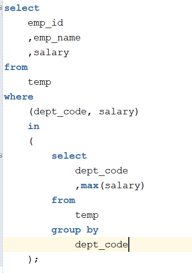 서브쿼리에서 결과로 나오는 행이 한컬럼이 아닌 두개이상을 가지고 있는경우이다.