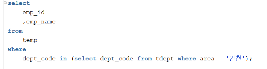 SUB QUERY의 결과가 2행으로 나왔고, 이 2행을 조건문으로 쓰기위해서