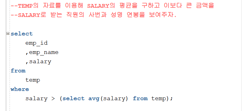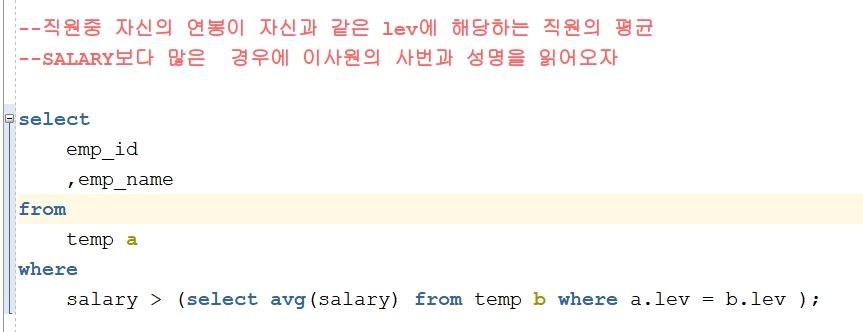 여기서 자신의 연봉은 OUTER QUERY의 SALARY에 해당하고,