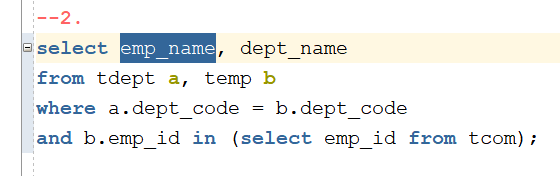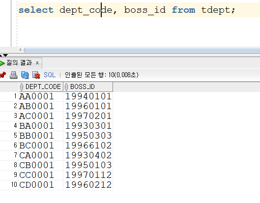 주니 tcom 에서 선택된 8개의 사원번호가 출력되었다.