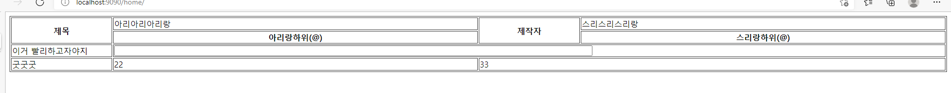 <table> 태그를만들어주고 그 아래