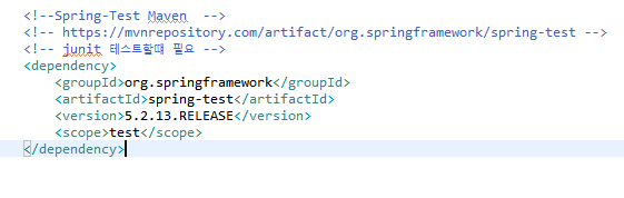 이렇게 dependency를 추가하면 @Runwith 어노테이션과 @ContextConfiguration을 사용할 수 있다.