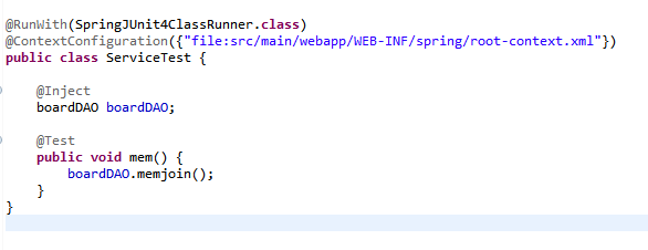 이때 @ContextConfiguration에서 설정파일을 정할때 xml 파일 밖에 설정이 안되는것같았다