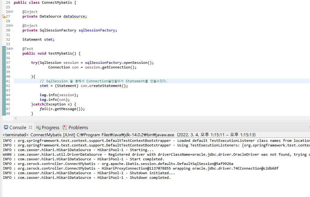 SqlSessionFactoryBean객체에다가 dataSource객체를 생성자 메서드로 주입한 후 ~~.getObejct() 하여