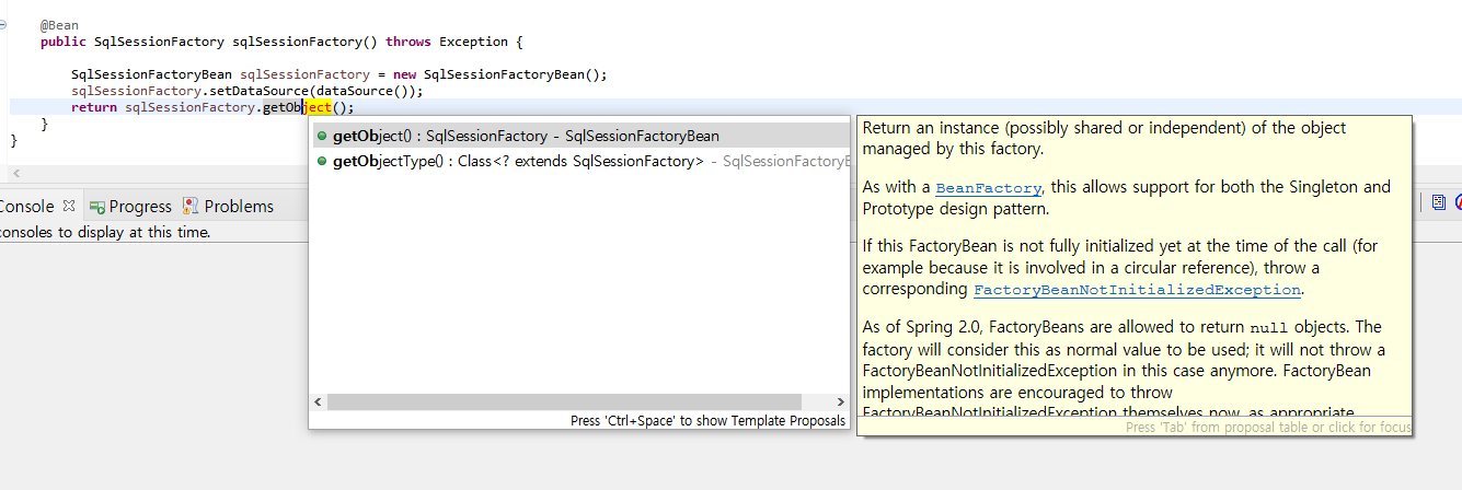 <bean id="sqlSessionFactory" class="~~~.SqlSessionFactoryBean">임의 볼수있는데